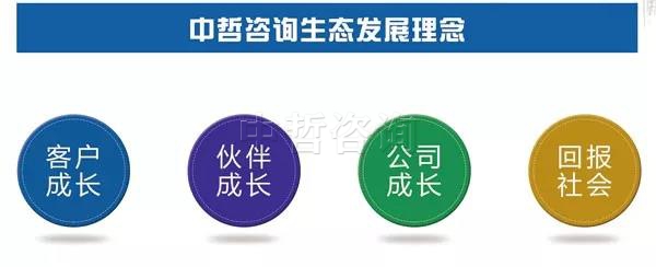 锐意进取,追求卓越 1、目光向前,不仅去做,而且要执着地去做 2、坚韧不拔,任何困难和挫折也阻挡不了中哲咨询一往无前的意志 3、勇于变革,善于变革,以变革求生存、求发展 4、培养提高学习能力,善于学习,持续学习,追求卓越 5、在市场竞争中不断取胜,在反省中超越自我,在学习中超越平庸、不断进步 6、实现目标后体验成功的快乐,追求过程中体验奋斗的乐趣 肆 1、用专业围绕客户提供价值 2、注重长远发展,不因商业利益伤害客户价值 3、尊重客户感受,与客户共同成长 4、构建互联生态的联盟,更好地服务客户 伍 关心伙伴成长 1、构建学习分享型组织 2、为伙伴提供良好的工作氛围和激励体系 3、不断完善伙伴培训体系和职业发展通道,使伙伴与企业共同成长 4、充分尊重和信任伙伴,不断引导和鼓励,使其获得成就与超越的喜悦 陆 柒 企业标语 1.若要如何,全凭自己 2.我是一切的根源 3.百分百时间,百分百可能性 4.言行一致,言出必行 5.我的愿景、承诺、目标主宰我的心态及行动,而不是我的感觉、评估或批评6.团队-团队参与者承诺于共同理想 7.没有立场,就有下场 8.埋藏在心底的爱不是爱,表达出来的爱也不是爱,让别人收到的爱才是真正的爱 9.越努力越幸运 捌 玖 【四个领导关键特性】 热切渴望、绝对信心、有效行动、钢铁意志 拾 1、具备使命感 2、明确描述目标并实现目标 3、挑战新事物 4、获取众人的信任和尊敬 5、抱有关爱之心 拾壹 【人生哲学】 1、三要素中最重要的是“思维方式”,甚至可以说“思维方式”决定了人生结果。“思维方式”是指人的心态,人对于人生的态度,包括哲学、理念和思想等,可以从负100分到正100分范围内打分。 2、能力,是才能、智商,是先天的资质,包括健康以及运动神经等,可以从零分到100分幅度内打分。 3、热情是指人生或工作的干劲和努力的程度,是后天的要素,可由自己的意志掌握,可以从零分到100分幅度内打分。 拾贰 拾叁 【关于成长】 1、关于成长的2个途径:批评与自我批评、自省 拾肆 【中哲咨询生态发展理念】