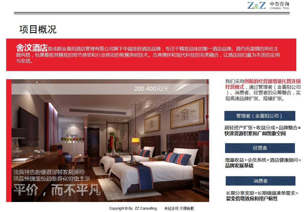 《舍汶酒店项目商业计划书》充分地展示了公司的基本情况、产品与技术、行业及市场分析、竞争对手分析、商业模式、运营策略、公司战略、公司管理、融资计划、财务预测与分析、风险分析及控制等内容。该商业计划书无论是用于寻找战略合作伙伴、寻求风险投资资金或其他任何投资信贷来源均能够做到内容完整、意愿真诚、基于事实、结构清晰、通俗易懂。该商业计划书准确把握行业市场现状和发展趋势、项目商业模式、项目运营策略、公司战略规划、财务预测等基本内容,深度分析了项目的竞争优势、盈利能力、生存能力、发展潜力等,充分体现项目的投资价值。