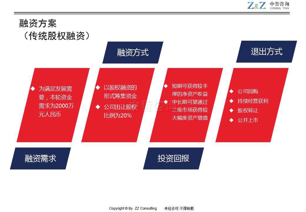 •完善融资策略与财务分析:根据战略规划进行切实的财务分析,并对融资资金使用计划、退出方式等提出适当建议。