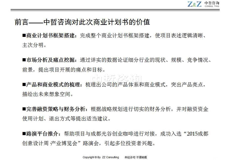 •商业计划书框架搭建:完成整个商业计划书框架构建,使项目表述逻辑清晰、主次分明,并整理出核心竞争力。