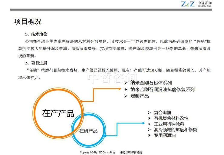 《纳米金刚石的商业应用项目商业计划书》充分地展示了公司的基本情况、产品与技术、行业及市场分析、竞争对手分析、商业模式、运营策略、公司战略、公司管理、融资计划、财务预测与分析、风险分析及控制等内容。该商业计划书无论是用于寻找战略合作伙伴、寻求风险投资资金或其他任何投资信贷来源均能够做到内容完整、意愿真诚、基于事实、结构清晰、通俗易懂。该商业计划书准确把握行业市场现状和发展趋势、项目商业模式、项目运营策略、公司战略规划、财务预测等基本内容,深度分析了项目的竞争优势、盈利能力、生存能力、发展潜力等,充分体现项目的投资价值。