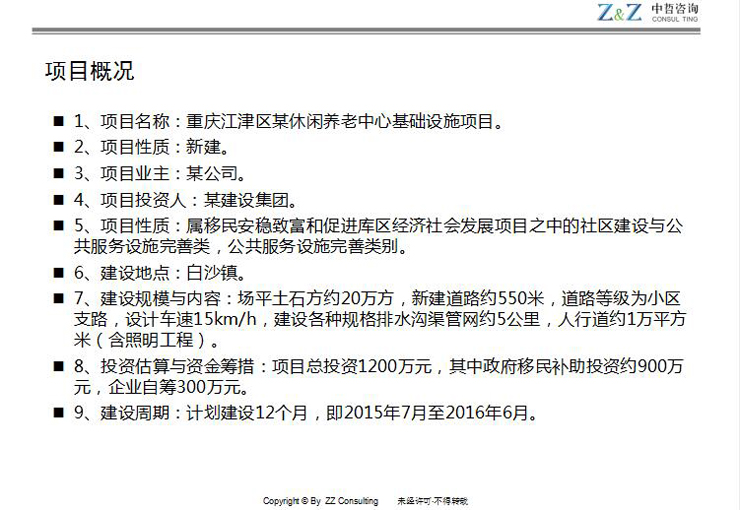 4、全面系统分析:基于资深的专家团队,对投资项目的技术资源条件、区域市场需求、财务经济状况进行全面系统的分析,通过项目可行性研究对项目实施条件是否具备、项目技术水平是否先进、项目投资是否具有经济合理性、投资能否取得最佳效益等问题作出明确的回答。