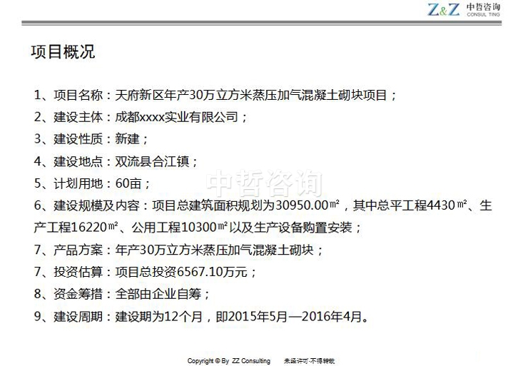 【天府新区年产30万立方米蒸压加气混凝土砌块项目可行性研究报告】