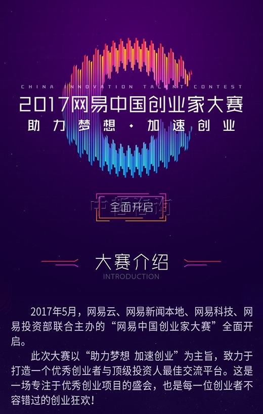 在“大众创业、万众创新”的“双创”热潮影响下,越来越多的有志之士参与到“创业”这个高风险、高回报的行列中。在此背景下,为了帮助创业者对接风投机构、挖掘热门领域的未来独角兽,网易云携手COCOSPACE、中哲咨询等等多家机构启动了2017网易中国创业家大赛,打造优秀创业者与顶级投资人交流的专业平台。