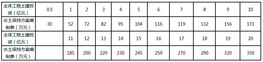 根据《国家发展和改革委员会办公厅、建设部办公厅关于印发修订建设监理与咨询服务收费标准的工作方案的通知》(发改办价格[2005]632号),《国家计委和国家环境保护总局关于规范环境影响咨询收费有关问题的通知》(计价格[2002]125号),水土保持技术文件技术咨询服务费可参考表4标准计列。