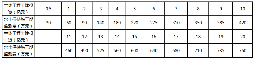 根据《水土保持生态环境监测网络管理办法》(水利部第12号令)和《水土保持监测技术规范》(SL277-2002)要求,水土保持监测费包括监测设施费和施工期监测费。其中,水土保持监测设施费在水土保持工程措施费中计列,施工期监测费可参考表2标准计列。