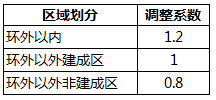 在上述收费标准的基础上,根据项目所在区域所处地理位置以及是否为建成区划分,按照下表的具体划分标准乘以相应的调整系数,进行调整: