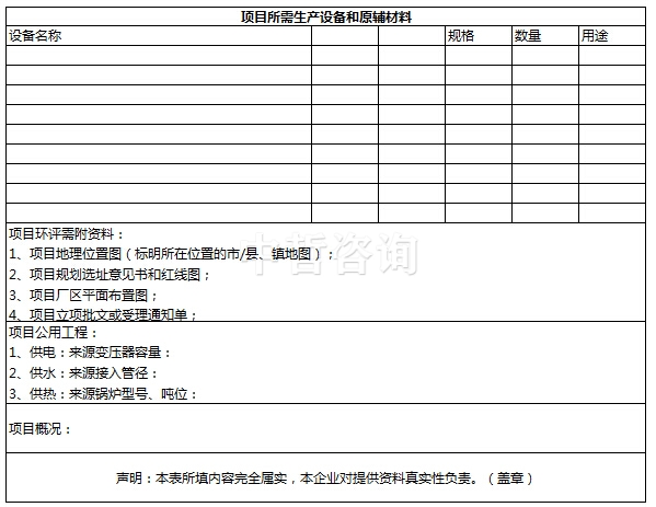 注:技改项目需同时提交企业现有产品、生产规模、原辅材料消耗、现有生产工艺、现有设备的详细清单;