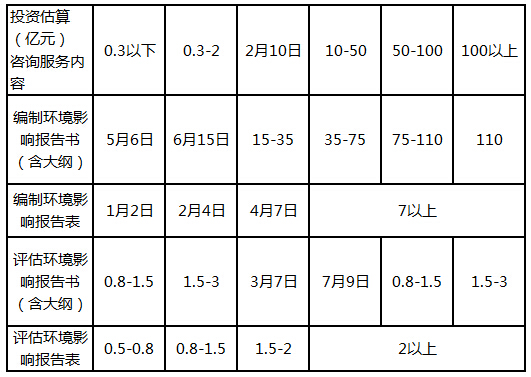 根据国家计委和国家环境保护总局颁布的《国家计委、国家环境保护总局关于规范环境影响咨询收费有关问题的通知》计价格[2002]125号,环境影响咨询收费标准见下表:
