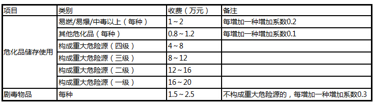 (2)危险化学品使用、储存企业安全现状评价收费标准