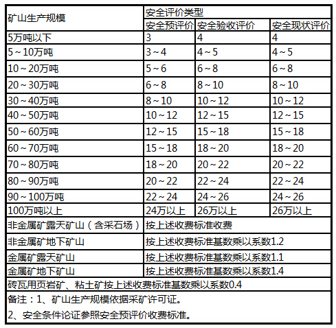 3、金属非金属矿开采企业安全评价收费标准