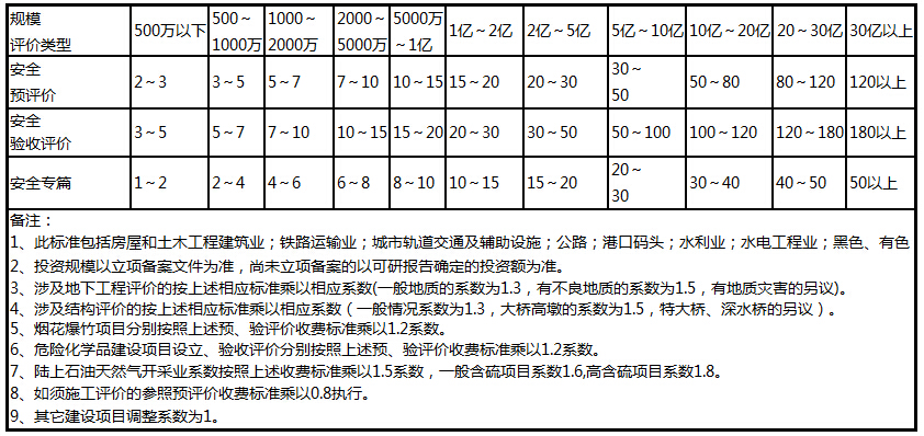 注:项目安全评价实际报告费用根据企业生产性质、规模情况而定,一般情况下,比以上规定价格低