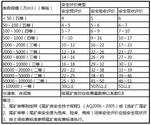 7、独立尾矿、灰渣、赤泥库安全评价收费标准